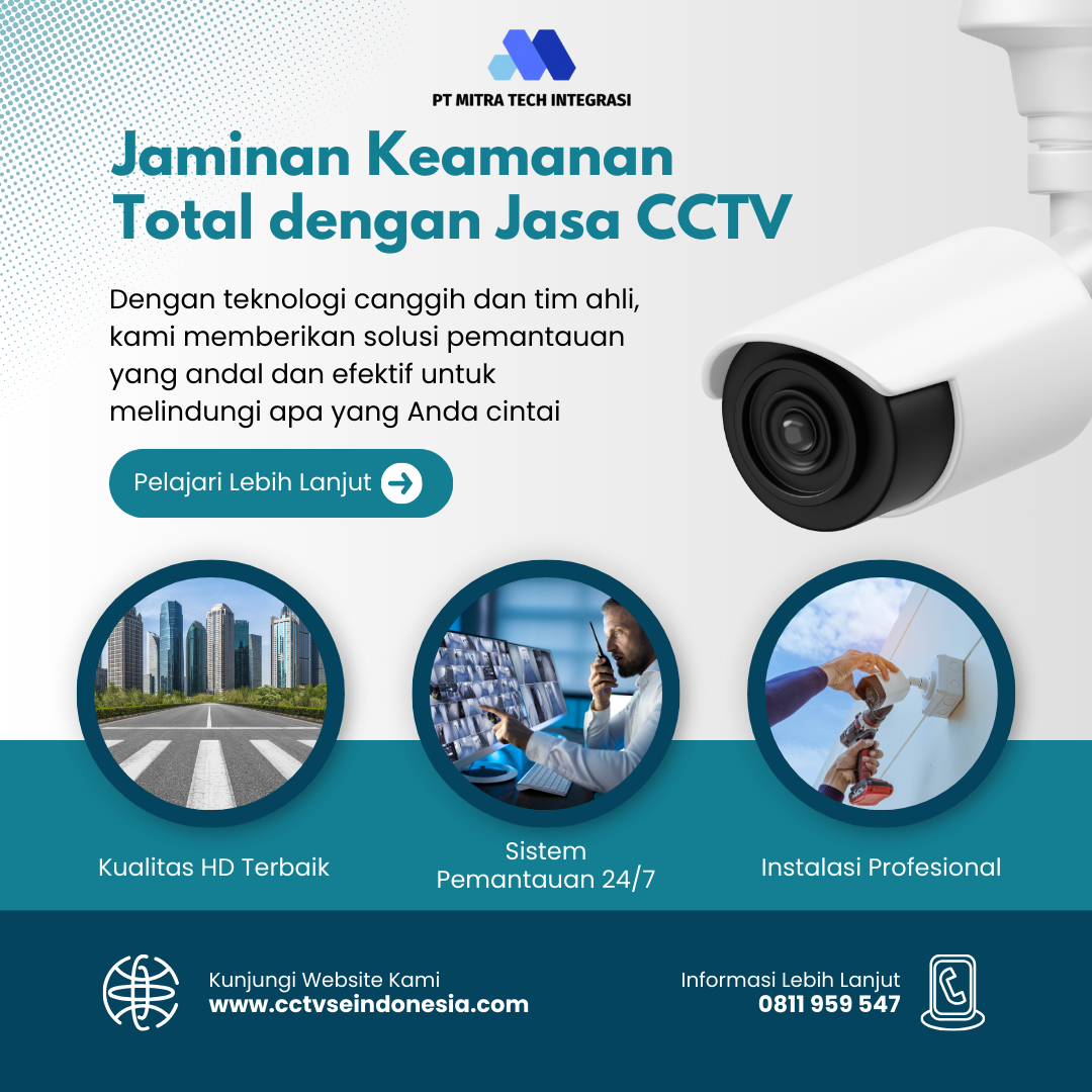 PT. Mitra Tech Integrasi berpengalaman lebih dari 15 tahun. hadir sebagai solusi terpercaya untuk kebutuhan pemasangan CCTV. Kami melayani berbagai area seluruh Indonesia mulai dari Jawa Barat, Jawa Timur, Jabodetabek, Sulawesi, Kalimantan hingga wilayah seindonesia. Dengan dukungan teknisi profesional dan pilihan paket CCTV yang lengkap, kami siap membantu Anda meningkatkan keamanan rumah, kantor, maupun tempat usaha di seluruh Indonesia.